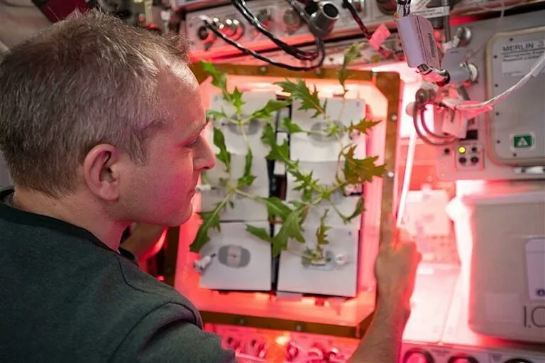 ΕΡΕΥΝΑ ΑΝΑΠΤΥΞΗΣ ΦΥΤΩΝ ΣΤΟΝ ΔΔΣ. Ο αστροναύτης του Καναδικού Διαστημικού Οργανισμού David Saint-Jacques φροντίζει φυτά στο Διεθνή Διαστημικό Σταθμό. Η έρευνα ΑΥΤΉ ρίχνει φως στον τρόπο ανάπτυξης υγιεινής τροφής σε απομακρυσμένες κοινότητες στη Γη. Εικόνα: CSA/NASA.